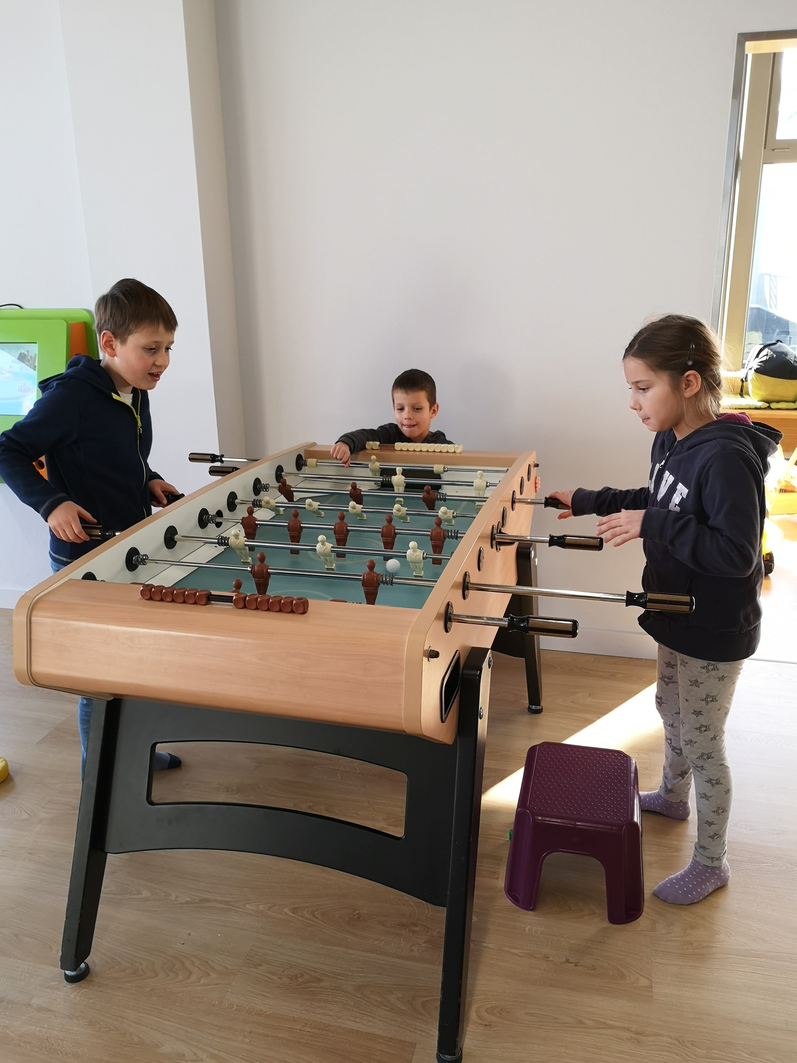 Potem se ji je seveda že mudilo igrat z Majem, medtem, ko sva midva s Tadejem udobno uživala zleknjena na kavče v igralnici. V sklopu igralnice so seveda tudi stranišča, ki so brezmadežno čista.