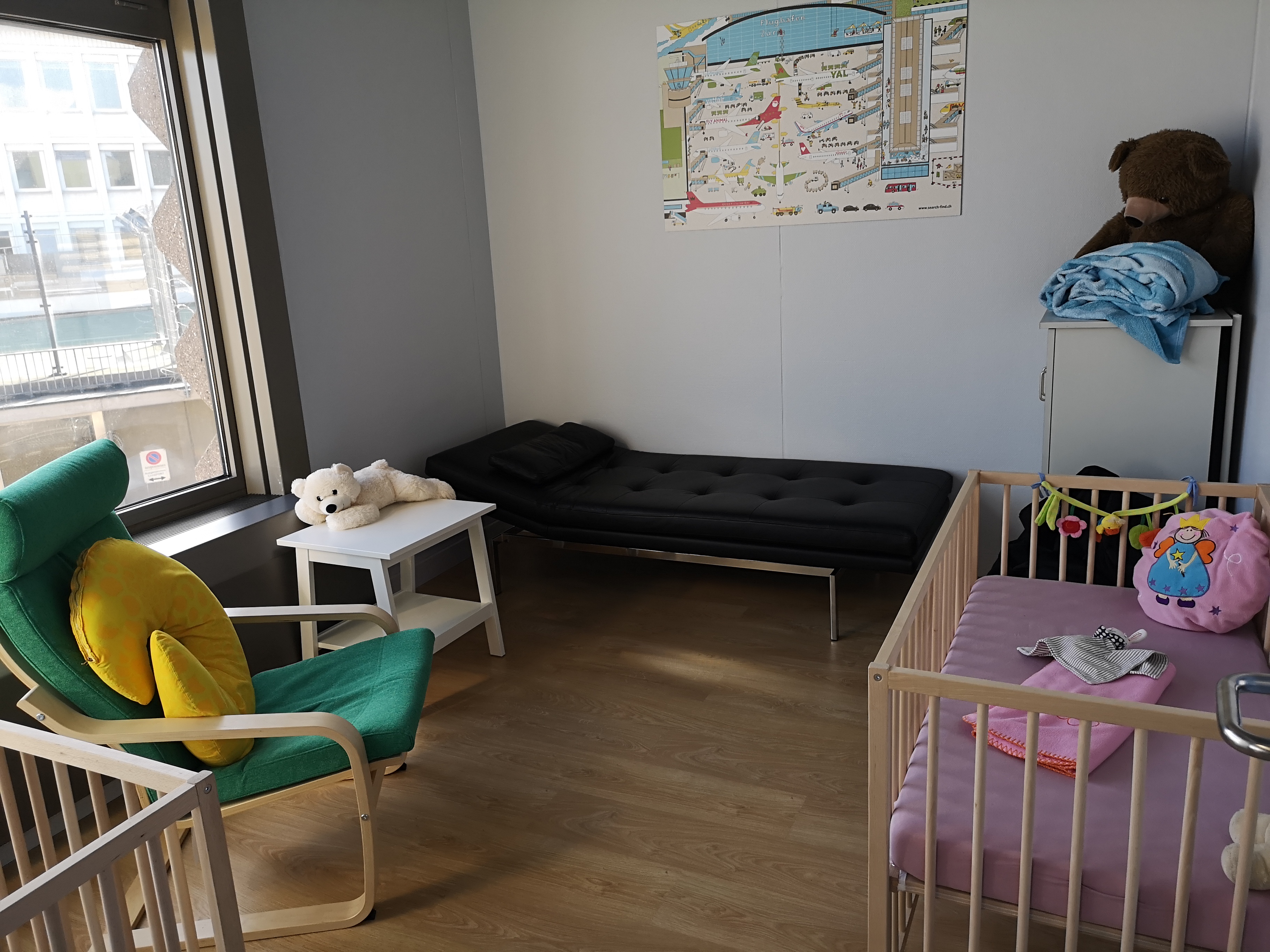 Vaš malček bo pojedel za mizo v otroškem stolčku, nato pa se gre lahko igrat med številne igrače ali pa morda počivat v tako imenovano tiho sobo. Ja, tudi to imajo. Sobo, v kateri sta dve otroški posteljici, počivalnik, na katerem lahko dojite in celo kavč, na katerem je naša Juno za petnajst minut udobno zadremala.