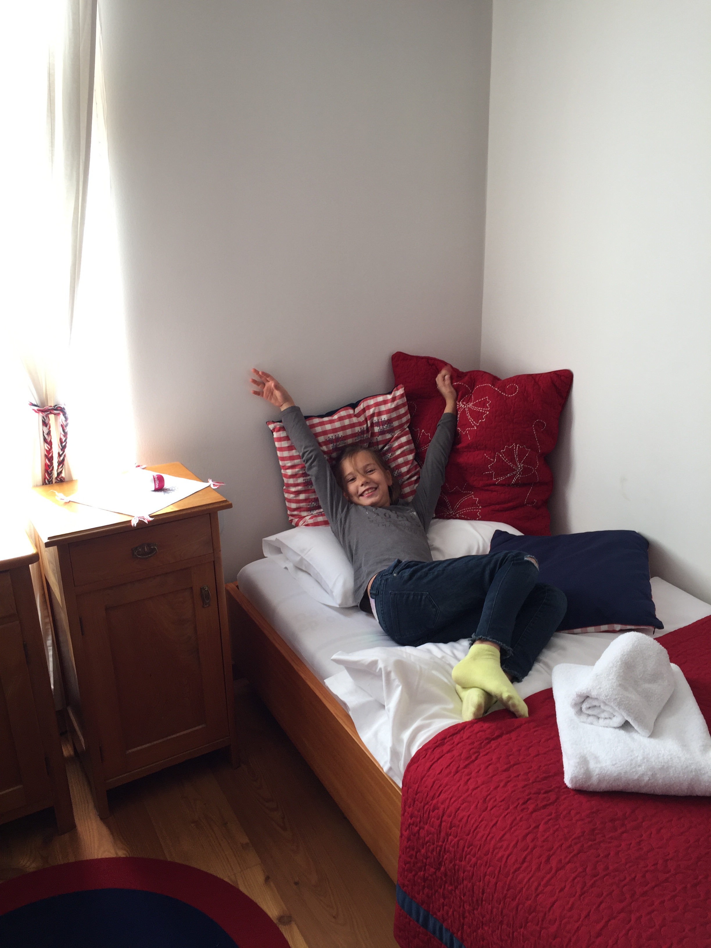 Tokrat smo se odpravili kar na dvodnevni izlet, saj smo praznovali Tadejev rojstni dan. Prespali smo v čudovitem hotelu Pr’ Gavedarjo, ki je nekaj posebnnega, saj so sobe urejene v slogu, ki je mešanica starega in sodobnega sloga. Midva s Tadejem sva bila navdušena, pa tudi otrokoma je bilo strašansko všeč.