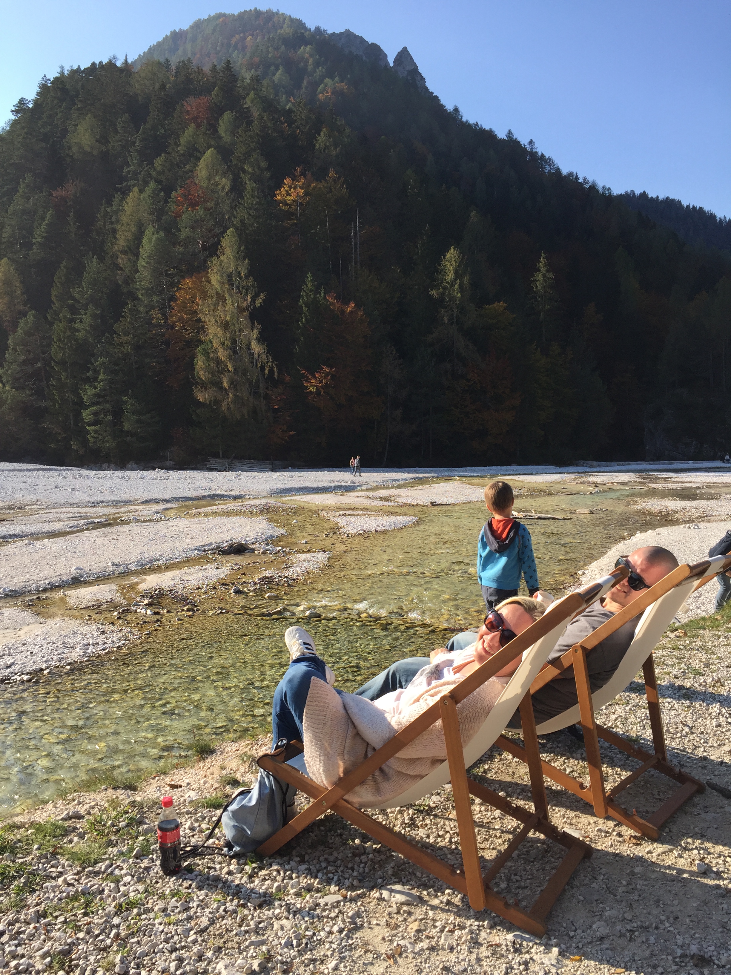 Prvi dan smo uživali v Kranjski Gori, kjer smo polnili telo z D vitaminom na jezeru Jasna. Otroka sta uživala v plezanju po drevesih, skakanju po kamnih in namakanju nog v vodo, midva pa v kavici in uživanju na udobnih ležalnikih.