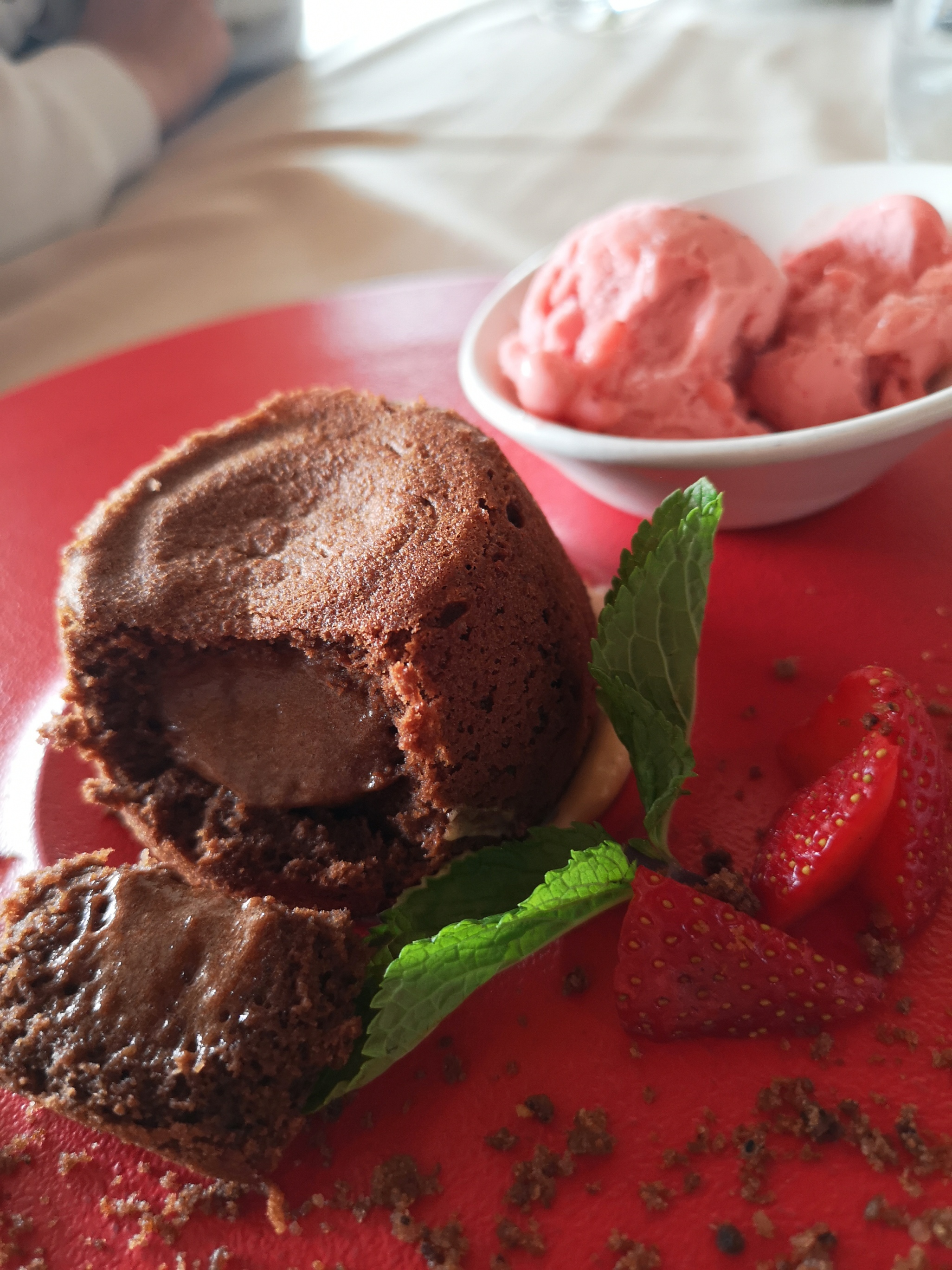 Zelo so nas navdušile tudi sladice – limonina pita in sufle z jagodnim sladoledom. Z eno besedo: božansko.