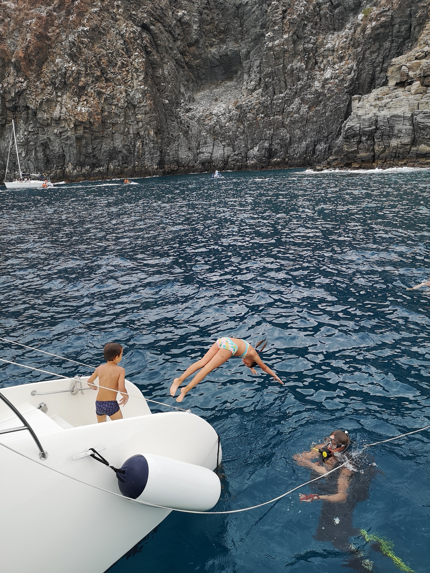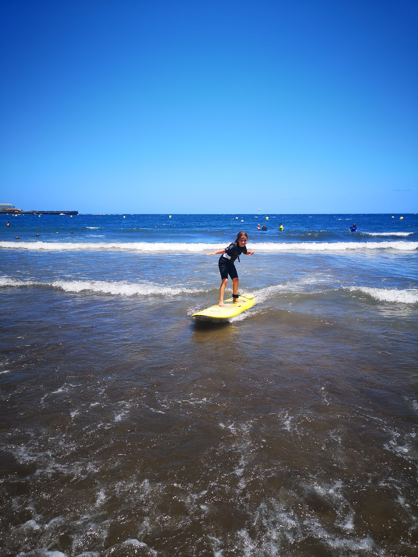 Tenerife je priljubljena destinacija mnogih deskarjev in kajtarjev in tudi moja otroka sta si zaželela preizkusiti svojo spretnost na valovih. Pa smo šli v El Medano, kjer so najbolj primerni valovi. Našli smo izposojevalnico surfov, kjer se lahko dogovoriš za zasebne ure, otroka sta dobila vsak svoj neopren in svojo desko in smo šli. Ker inštruktor seveda ne govori slovensko, otroka (sploh Maj) pa ne ravno dobro angleško, je vse razložil meni, jaz pa njima. Šlo jima je neverjetno dobro in že po nekaj poskusih sta se oba uspešno postavila na desko in prevozila kar nekaj metrov. Bila sta navdušena in čez nekaj dni smo zadevo ponovili. Zdaj, ko imata nekaj osnov, si menda lahko naslednjič samo še sposodimo deski in lahko deskata kar sama.