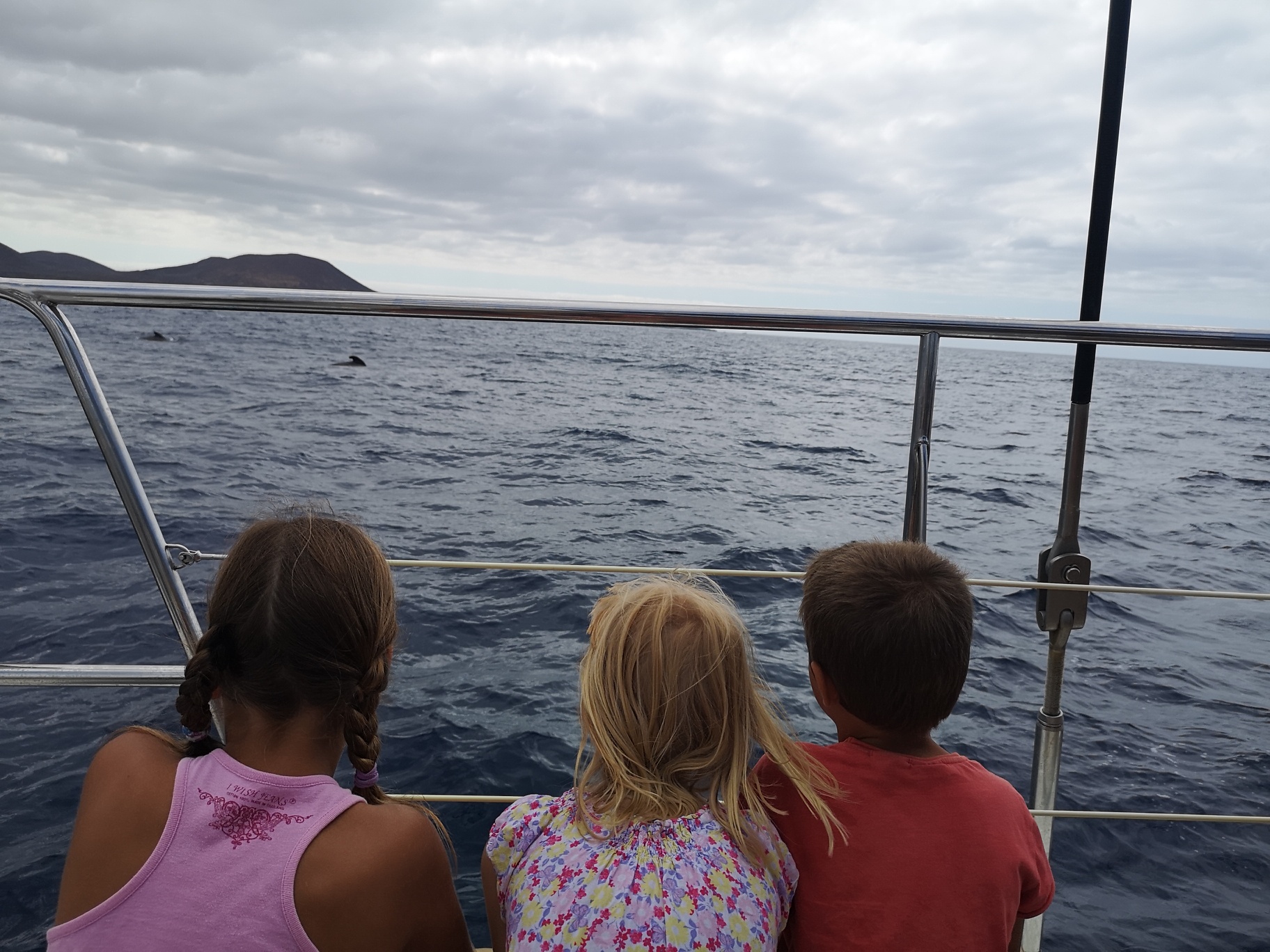 Poleg tega, da smo živali gledali v živalskem vrtu, smo se odločili, da jih bomo šli gledat tudi v naravno okolje. Ker je med otokoma Tenerife in La Gomera ogromen morski jarek, globok kar okoli 4,5 km, je tam ogromno kitov, delfinov, želv in drugih morskih živali. Mi smo se odločili za triurni izlet in že po nekaj minutah videli delfine, nato pa še dve veliki jati kitov, ki sta kar nekaj minut plavali okoli nas. Izlet smo zaključili s plavanjem, nato pa smo se vrnili v marino. Nepozabno!