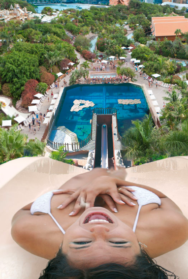 - Atrakcije so omejene glede na velikost. Za najmlajše je na voljo mivkasta plaža z majhnimi valovi, za malenkost večje nekaj manjših toboganov in tako imenovano ‘izgubljeno mesto’, nato pa gredo atrakcije po velikostih za otroke, večje od 110 cm, večje od 125 cm in večje od 140 cm. Poskrbljeno pa je seveda tudi za adrenalinske navdušence – najbolj zanimiv zanje je Tower of Power, na katerem se spustiš z 28-metrskega tobogana in lahko dosežeš hitrost do 80 km/h.