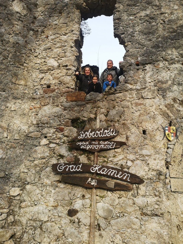 Čisto brezplačno pa si lahko ogledate grad Kamen v bližini Begunj. Mi smo nanj naleteli precej po naključju, ampak je res veličasten. Ogledate si ga lahko samo od zunaj oziroma se sprehodite po “ruševinah”, ampak če boste v bližini, vam ga priporočamo, ker je res zanimiv. Sploh če si ga boste ogledali v družbi kakšnih fantičev, se bodo v svoji domišljiji hitro prelevili v viteze :).