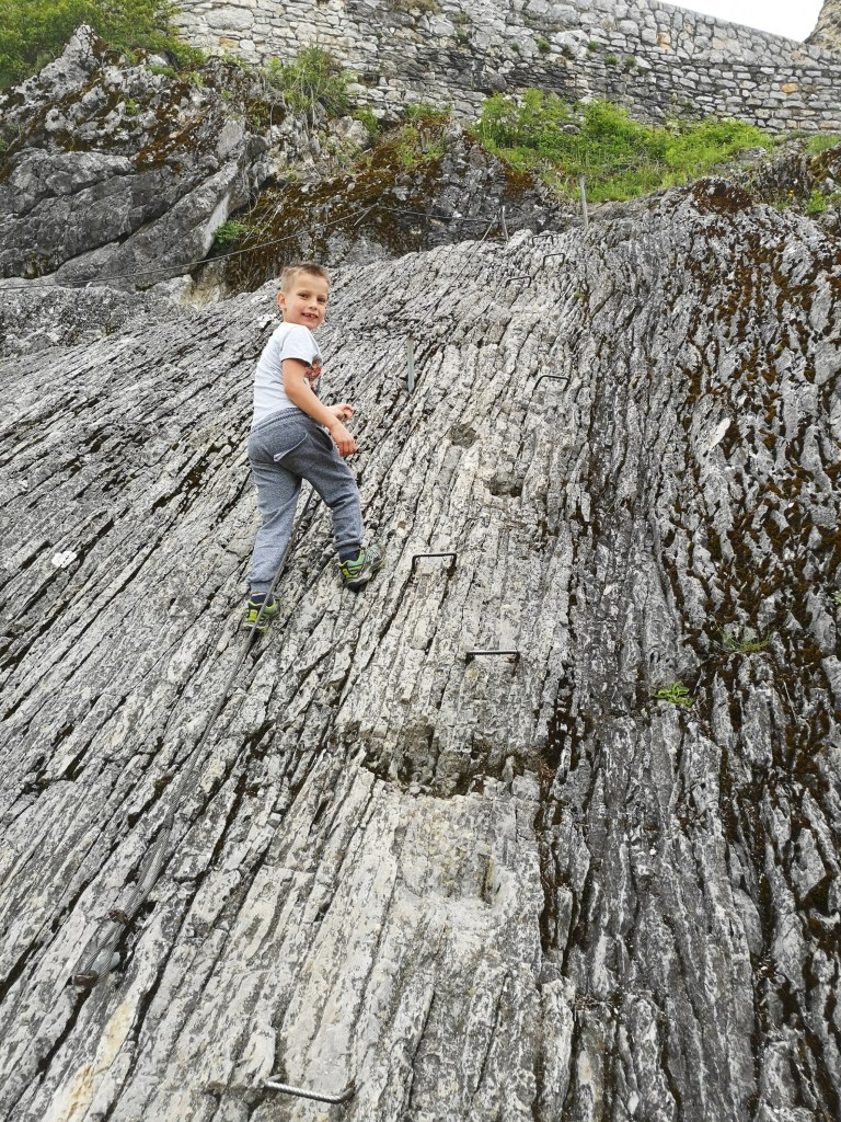 Stari grad Smlednik je eden tistih, ki nas je pozitivno presenetil iz večih razlogov. Vzpon do gradu ni naporen in dolg, na poti pa so nas razveselile še gugalnice. Ko pa smo prispeli do gradu, nas je tam čakalo igrišče, jabolčni zavitek in čudovit razgled. Ker Juno in Maj obožujeta plezanje, sta z največjim veseljem plezala po skalah in uživala vsako minuto, ki smo jo preživeli na gradu. Obisk gradu je luštna ideja za izlet, kadar nimate ravno cel dan časa, da bi se odpravili kam dlje, pa vas vseeno mika skočit nekam v naravo.