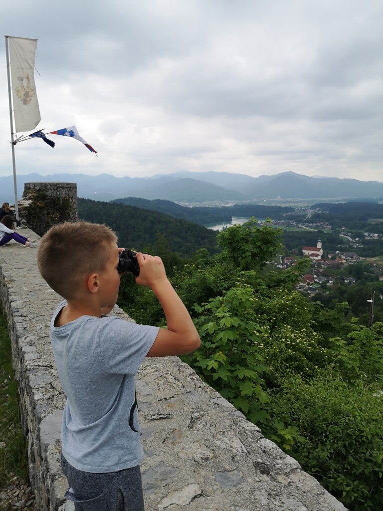 Na Blejskem gradu sva bila s Tadejem letos prvič po dolgem času, otroka pa sploh prvič. Mene je najbolj očaral razgled na jezero na eni strani in Triglav na drugi, otrokoma pa je bilo (itak) všeč vse. Sprehodili smo se skozi muzej, poskušali sladek med v trgovinici, občudovali kovane izdelke v kovačiji in se sprehajali po lepo urejenem gradu in grajskem dvorišču. Edini minus Blejskega gradu je precej visoka cena, ampak se mi zdi, da tistih enkrat na nekaj let, si pa tudi to lahko privoščimo.