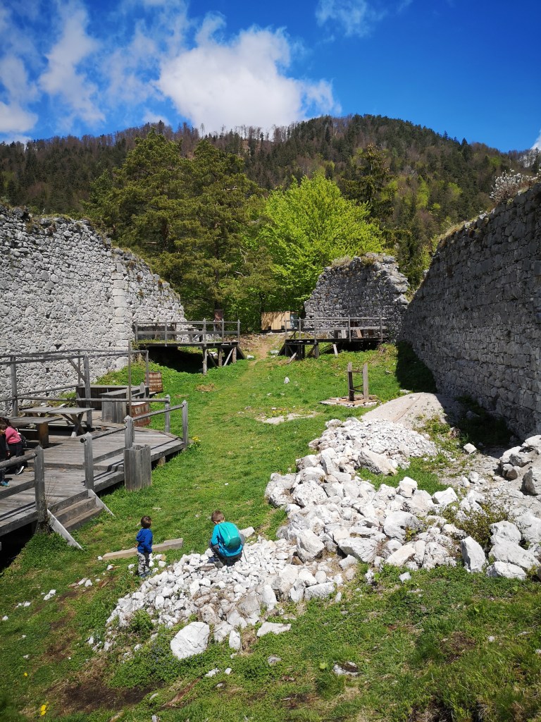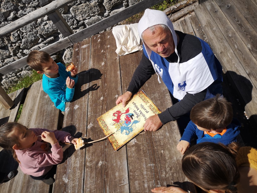 Mi smo v Tržiču preživeli dva dneva – prvi dan smo se odpravili na nekoliko krajšo pot na grad Altgutenberg oz. Hudi grad. Ne predolga in ne prestrma pot nas je vodila skozi gozd do ruševin gradu, kjer smo malo pomalicali, otroci pa so uživali v pripovedki o zakleti grajski gospodični. Bila je tako zelo skopa, da jo je oče preklel in je postala pol ženska, pol kača – v takšni obliki pa je nato varovala skrinjo z zakladom.