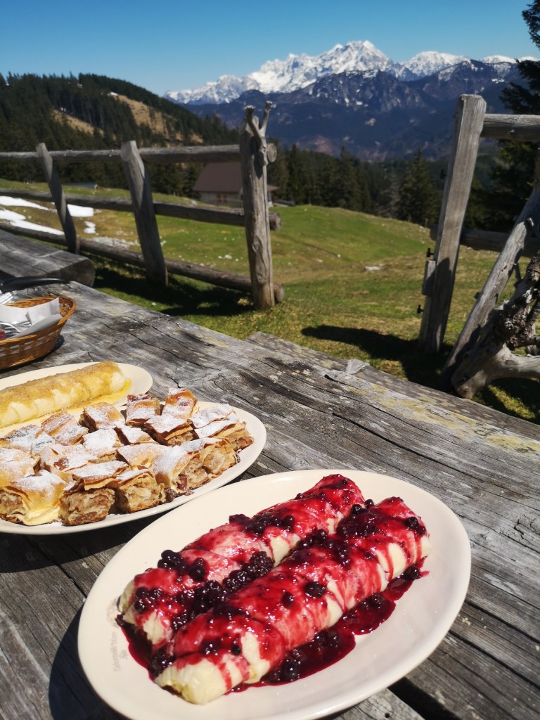 Okrepčali smo se z narezkom in štruklji (njam!!!), potem pa še kar nismo hoteli nazaj v dolino.