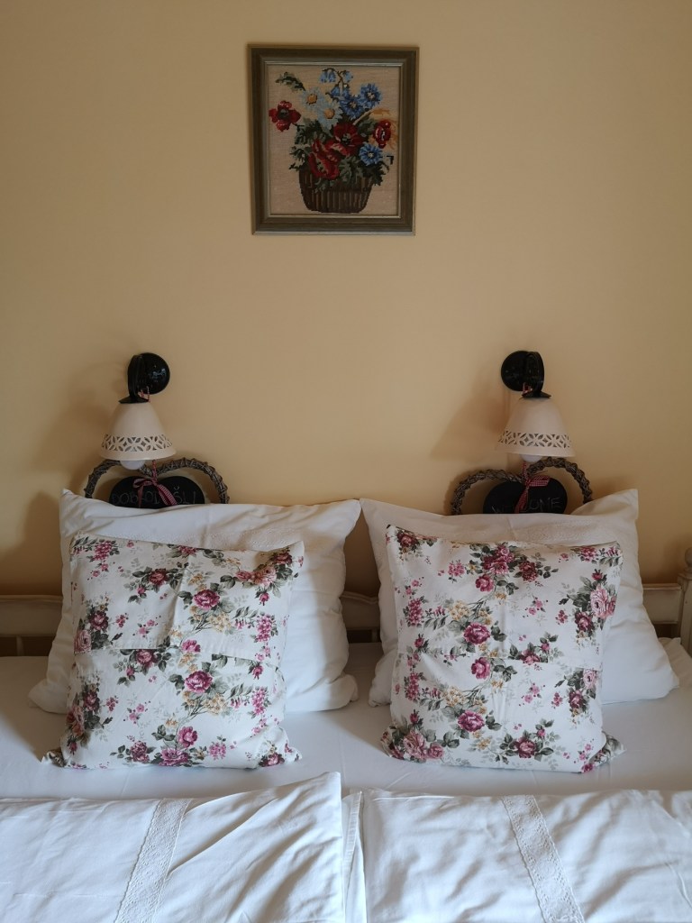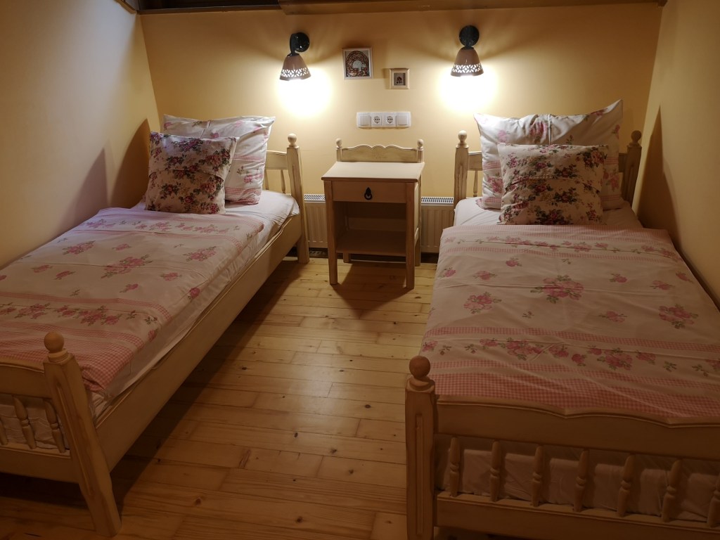 O gostoljubnosti družine Štern smo že veliko slišali, zato je bila kmetija Pri Kovačniku že nekaj časa na seznamu tistih, ki smo si jih želeli obiskati in ni nam bilo žal. Na kmetiji vas pričakajo odprtih rok. Izbirate lahko med namestitvijo v sobi z balkonom ali nekoliko večji družinski sobi, pred sobico pa je tudi kotiček, kjer si lahko skuhate kavo (če imate dojenčka, pa je tam tudi previjalna mizica).