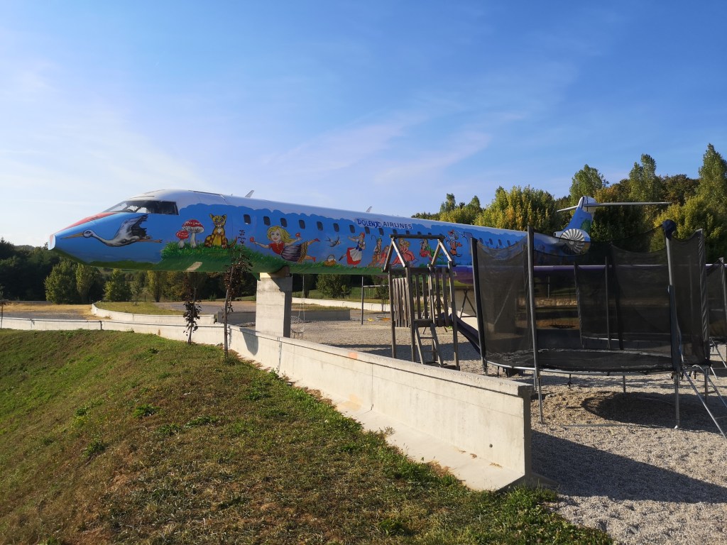 Lokacija: Hotel Dolenj’c se nahaja čisto blizu izvoza Novo mesto – zahod in res ga boste težko zgrešili. Zakaj? Ker se že z avtoceste vidi veliko letalo, ki ga imajo “parkiranega” na dvorišču. Ko se pripeljete pred hotel, vas tam čaka veliko parkirišče, potem pa le nekaj korakov do krasnega vrta z lepim razgledom in same restavracije.