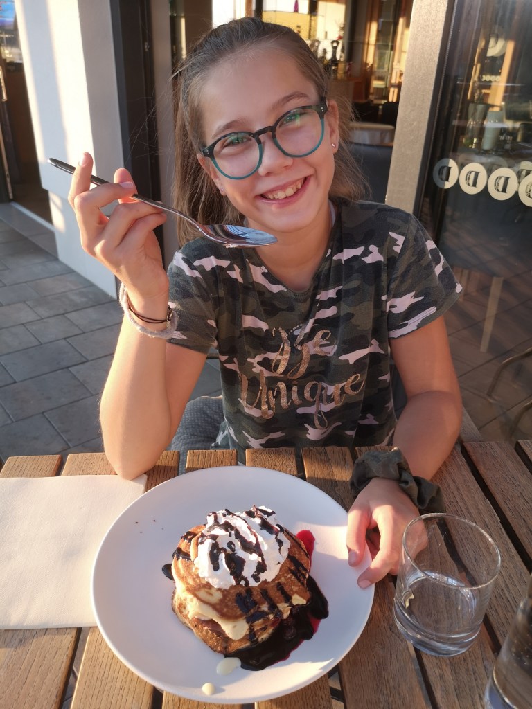 Brez sladice seveda ni šlo, zato smo preizkusili palačinke Dolenj’c s sadjem, vanilijevo kremo, nutelo in smetano – NJAM!