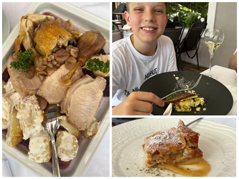 Ker verjamem, da boste po vsem tem že pošteno lačni, vam za konec izleta svetujem še skok v odlično domačo gostilno Kunst. Mene so navdušile dobrote, ki jih ne najdeš v vsaki gostilni – meso skopljenega petelina (kopuna) ter krškopoljskega prašiča, ki sta kulinarična posebnost gostilne, Maja pa predvsem odličen štrudelj, pa tudi dejstvo, da je ob gostilni igrišče, ki se ga otroci vedno razveselijo.